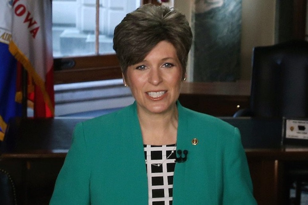 Strangely, Ernst didn’t even attack a favorite conservative target of Obama’s agenda, the Environmental Protection Agency’s regulations on coal, oil, and gas. Her remarks instead touched on the usual, stale GOP issues: the Keystone XL pipeline, terrorism, cutting government spending, and, of course, repealing Obamacare. “Americans have been hurting, but when we demanded solutions, too often Washington responded with the same stale mindset that led to failed policies like Obamacare,” she said. “It’s a mindset that gave us political talking points, not serious solutions.”