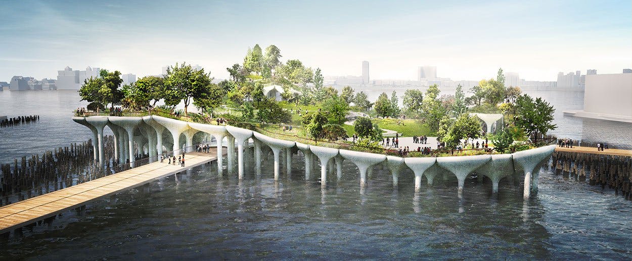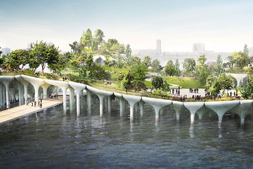 Wils approached the billionaire Barry Diller, the chairman of IAC. He was an obvious choice: His company’s Frank Gehry-designed headquarters in Chelsea overlooked Hudson River Park, and he and his wife, the fashion designer Diane von Furstenberg, were the largest private benefactors of New York’s much-celebrated High Line, just a couple blocks away. But instead of handing Wils a check, Diller counteroffered: Let him build a completely new park. What was initially a plan for a modest events space ballooned, and pretty soon Diller was offering to bankroll a miniature Central Park on an offshore platform called Pier 55. Designed by a top British architect, Thomas Heatherwick, the $130-million manmade island would be studded with groves of mature trees, walking paths, and three performance spaces. Not only did Diller agree to donate over $100 million for Pier 55’s construction, he promised to fund the maintenance for 20 years and handle all the event bookings.