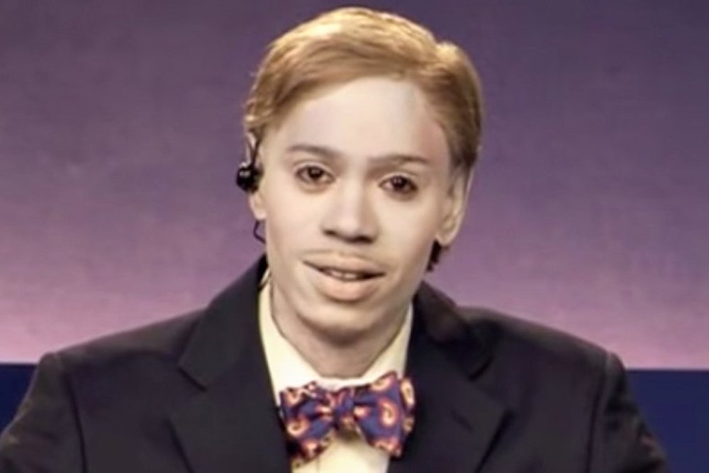Eddie Murphy’s 1984 “Saturday Night Live” skit, White Like Me, was a breakthrough—white people made fun of for a mainstream, if not primetime, audience. In a riff on Black Like Me, an autobiography of a white man who travels through the South disguised as a black man in order to see racism firsthand, Murphy dons whiteface (and brilliantly stiffens his gait) in order to investigate a world previously unavailable to him, which turns out to be full of cocktail parties and complimentary newspapers. “Well, I learned that we still have a very long way to go in this country before all men are truly equal,” he says at the end, “but I’ll tell you something—I’ve got a lot of friends, and we’ve got a lot of makeup.”