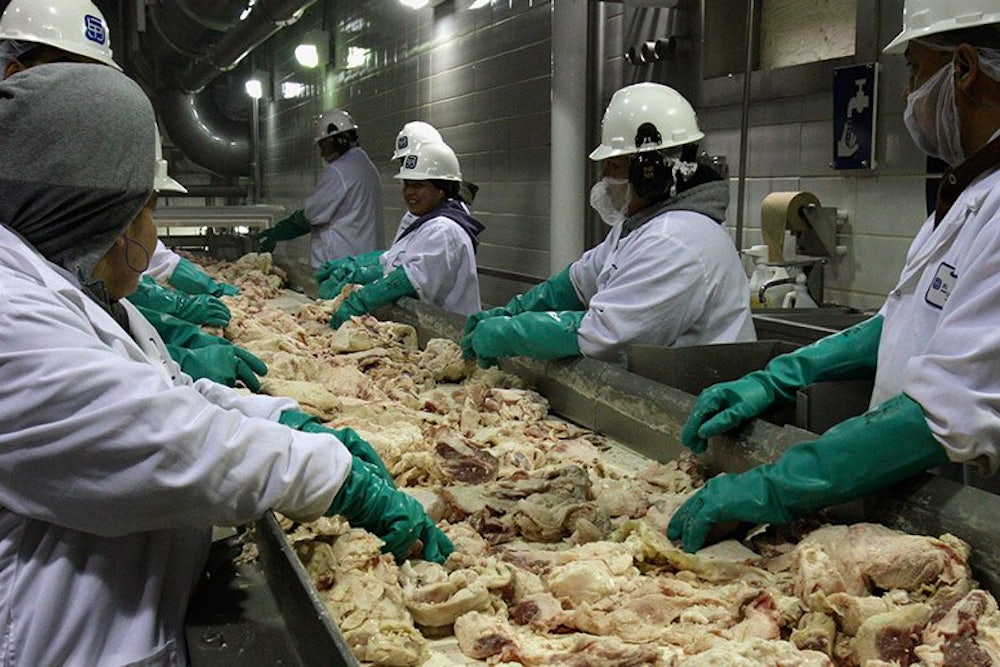 Second, in November, the USDA issued a long overdue report on the pilot program—and gave it rave reviews. Though the report stipulated that Hormel process-control auditors approve roughly two tons a day of pork contaminated by fecal matter, urine, bile, hair, intestinal contents, or diseased tissue, the department found “no reason to discontinue” the program and, in fact, wished to see if it “could be applied to additional establishments.” The inspectors express a shared opposition to this plan—and predict dire consequences if the program is permitted to expand. Hormel already supplies large grocery store and restaurant chains; if expanded from the current five pilot plants to more than 600 plants nationwide, they say, “the high-speed inspection model will lead to more contaminated and defective products on consumers’ plates.”