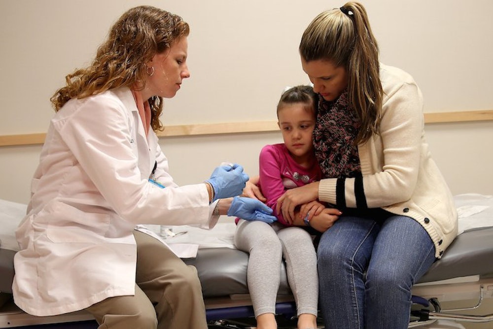 So could eliminating religious or personal belief exemptions curb outbreaks? We can look to the two states–Mississippi and West Virginia—that only allow medical exemptions. Neither state permits children to enroll in kindergarten without getting their full roster of vaccines—no matter their parents’ personal or spiritual beliefs. Mississippi hasn’t seen a case of measles since 1992 and West Virginia hasn’t seen one since 1994.