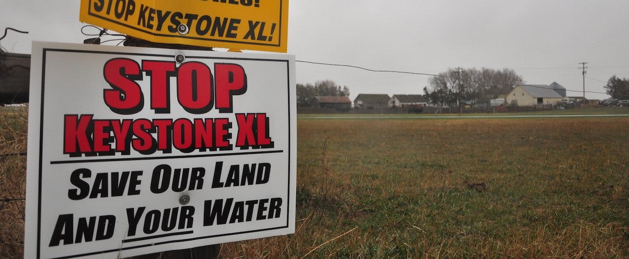 In 2012, the state legislature passed a law granting the governor authority to approve the route and bypassing Nebraska's Public Service Commission. A four-justice majority of the Nebraska Supreme Court ruled in January that the legislation violated the state constitution, but didn’t get the supermajority (five judges) to strike down the law—thereby preserving TransCanada’s plans. But landowners are still fighting TransCanada’s use of eminent domain on constitutional grounds, and in February a county court issued a temporary injunction halting TransCanada from acquiring land. Jane Kleeb, founder of anti-pipeline group Bold Nebraska, expects it could take anywhere between 12 to 30 months to be litigated against in courts.
