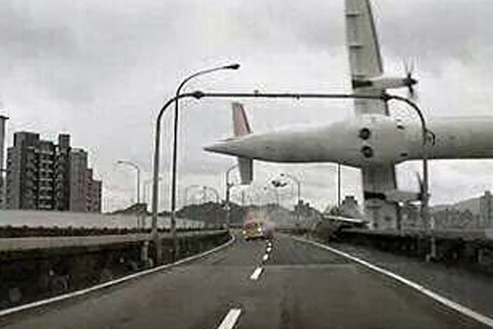 In the wake of Malaysia Airlines Flight 370’s disappearance without a trace, it is a relief, of sorts, to come across an air disaster that was caught on film. In addition, 15 of 58 passengers and crew survived the TransAsia crash. The knowledge that there are survivors also alters our ethical position in regard to looking at these photos. While it did not represent the triumph of engineering and grace under pressure achieved when Capt. Chesley Sullenberger landed his stricken craft on the Hudson with zero loss of life, the fact that so many survived means that the outcome was, all things considered, extraordinary. Depending on whether you are of a glass half-full or half-empty disposition, the event captured here might even be a cause for qualified rejoicing since, at heart, even as we obey the pre-flight safety briefing, we assume that if our plane goes down we’ve had it, irrespective of whether the seat belts are buckled and the evacuation slides deploy.