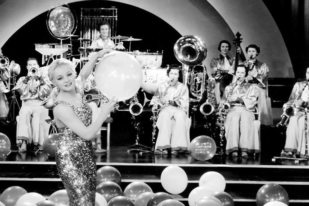 In the early days of the swing era, the singer Ina Ray Hutton, a vivacious performer with pinup-girl looks, led one of the dozen or so all-female orchestras in operation around the country. Now commonly misconstrued to have been a secondary effect of wartime conscription, like the All-American Girls Baseball League, the phenomenon of all-female swing bands actually arose several years before Pearl Harbor. In fact, many of the exclusively female groups had disbanded before the United States entered the war. The orchestras were usually packaged as sexy novelty attractions, much to the frustration of the musicians called upon to play demanding dance-band orchestrations and to improvise inventively while looking alluring in skintight gowns and cut-glass baubles. Male audiences ogled, and male critics shrugged. As the jazz writer George T. Simon scoffed in his biographical history, The Big Bands, “Only God can make a tree, and only men can play good jazz.”