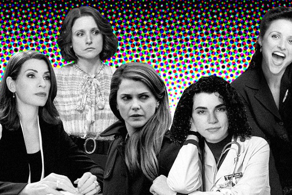 What all these ’90s women shared was a directness, an unguarded approach to the world. Their twenty-first-century incarnations reflect the opposite. Where Felicity was dithering and impulsive (after all, she followed a boy across the country after he wrote a kind note in her yearbook), Elizabeth Jennings, the character Russell currently plays on “The Americans,” is coolly competent, a determined KGB spy with an arctic mien and a dangerous back kick. Elizabeth is a master of composure, and her shampoo-commercial hair is a sign of that command. You could say the same of Margulies’s chilly lawyer, Alicia Florrick, on “The Good Wife.” The crass Selina Meyer (Louis-Dreyfus) of “Veep” doesn’t have quite the same poise and self-possession, but she shares these characters’ hardened exterior, professional ambition, and need for control. And in today’s TV landscape, that means straight hair. Television has become increasingly populated by lovable messes—Lena Dunham on “Girls,” Zooey Deschanel on “New Girl,” Gaby Hoffman on “Girls” and “Transparent”—but our most admirable and impressive female characters are sleek and subdued. What does this say about what we want from our TV heroines?