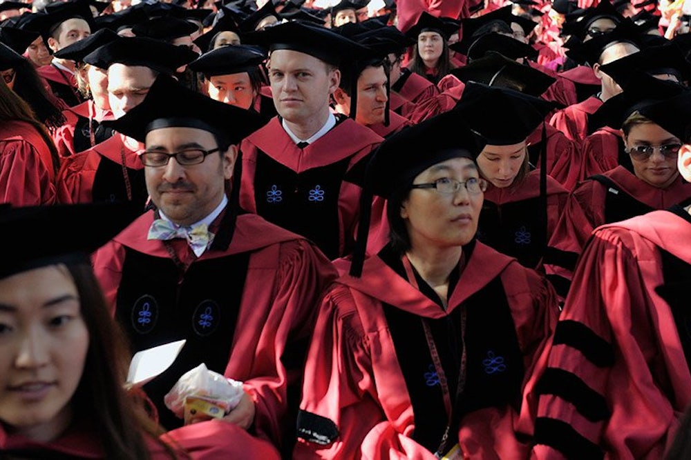 Bruni offers something a little different; repeated reassurance that the Ivies are unimportant because there are still other ways to attain wealth and status in America. Many of the anecdotes summoned to support this argument share a gently contradictory structure: a high-school senior gets rejected from an elite institution, attends a less elite institution, and eventually “succeeds,” an activity that seems to involve attending professional school at an elite institution or earning a large salary at a prestigious job. It’s okay not to get into Harvard, he suggests, because you can either get in later or find a different way to do the same sorts of things as people who do get into Harvard.