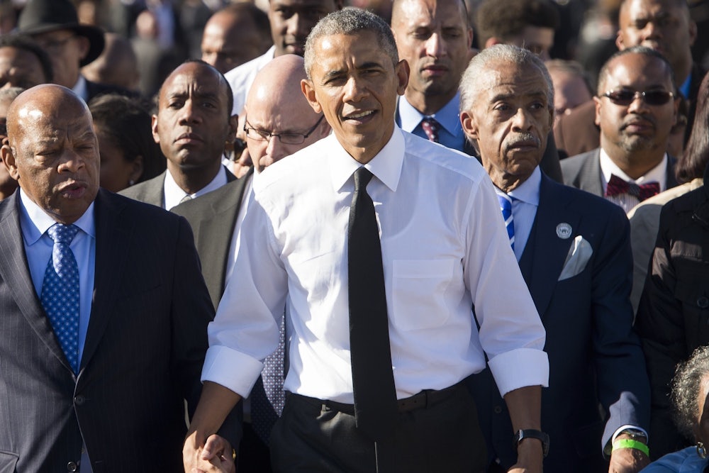 Standing at the foot of the Edmund Pettus Bridge, the president gave a speech that resembled a more straightforward and unvarnished edition of his famed “A More Perfect Union” speech from his first White House campaign. Now, as then, he was selling change, this time to a Congressional delegation in town to honor the 1965 activists. Obama delivered a relatively hard sell to them, imploring them to go back to Washington and get their colleagues to revive the Voting Rights Act (VRA), which was critically injured by the Shelby County v. Holder Supreme Court ruling two years ago. He called them out with more poetic language than they probably merited: