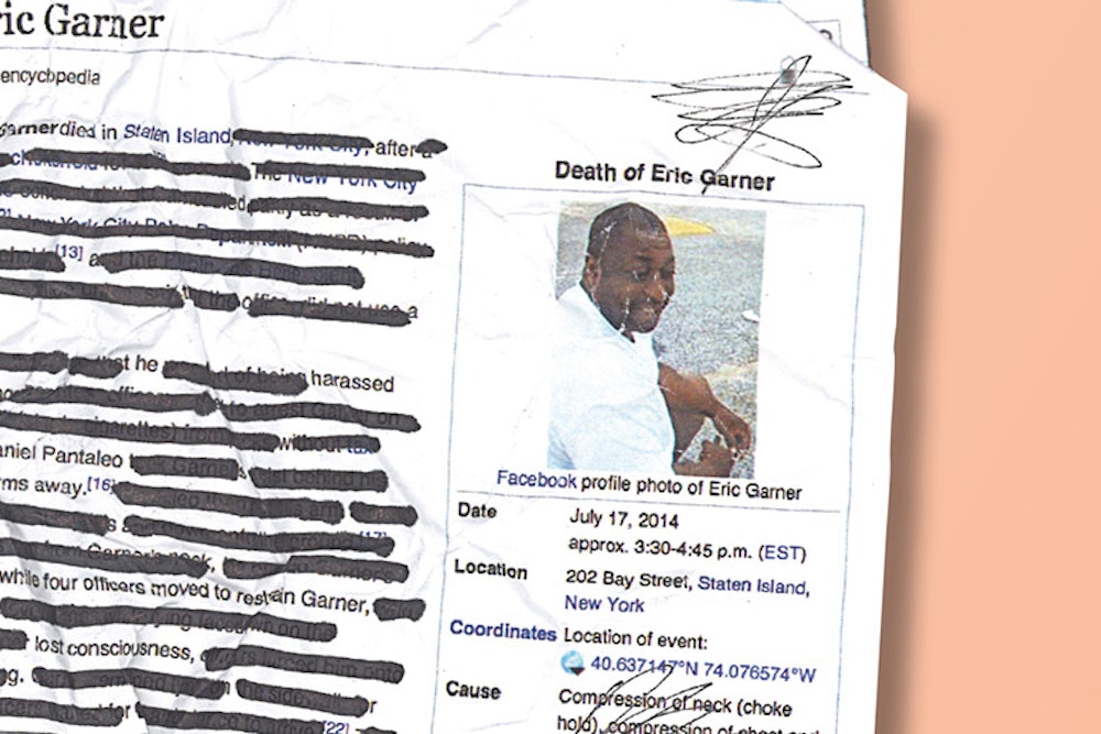 The Wikipedia page on the July choking death of Eric Garner by police officers in Staten Island, which led to widespread protests around the city, was among those altered. The word “chokehold,” for example, was edited twice, augmented once with the modifying phrase “chokehold or headlock,” and on the other occasion deleted and replaced with “respiratory distress.”