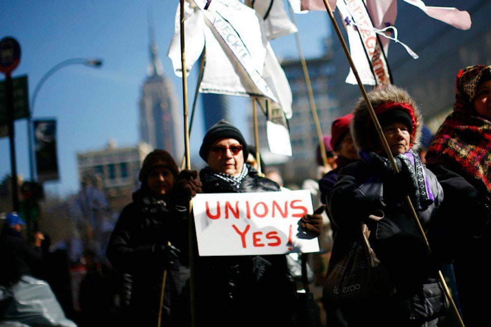 We are told today that we don’t need any of that and maybe never did. Unions in the American private sector have been all but annihilated, and it’s not just the organized right or Wisconsin Governor Scott Walker—the most visible example so far this decade—waging war on public employee unions. Other governors and legislators, Republicans and Democrats alike, have enthusiastically taken up this fight around the country. Some would gladly revoke public unions’ right to organize, bargain, or speak out at all, as has occurred in Wisconsin, putting Walker in the top tier of Republican presidential hopefuls for 2016.
