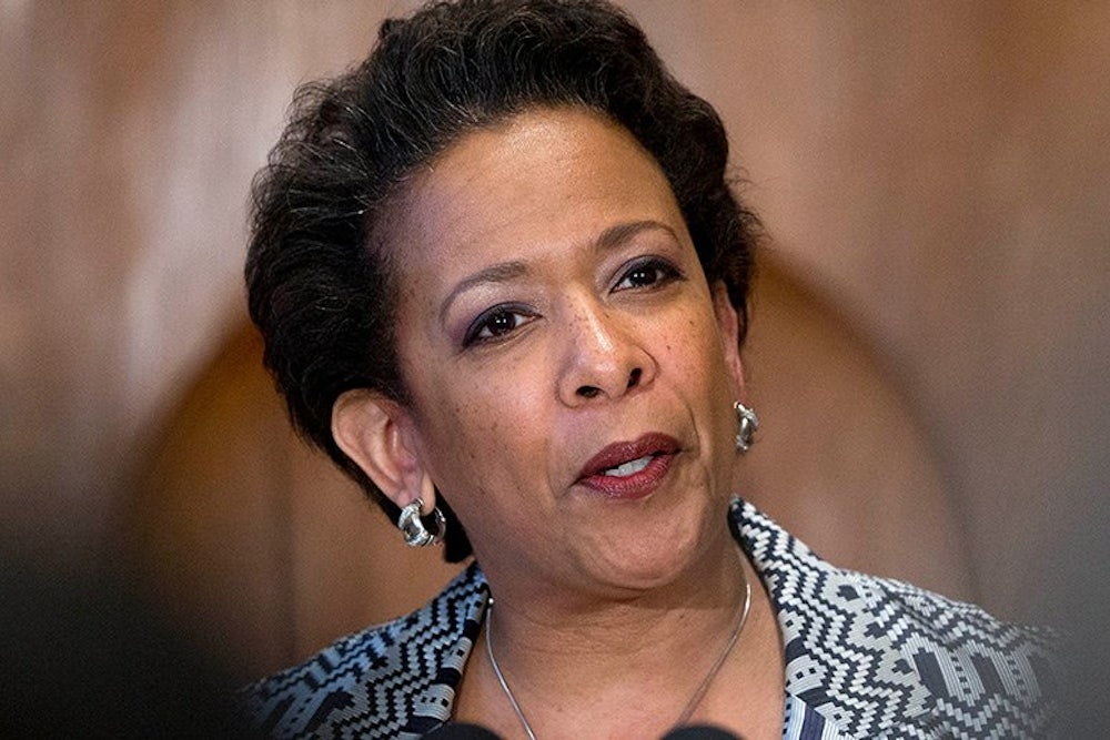 We received our latest stark reminder of that on Monday morning in Baltimore, about a half-hour’s drive up 295 North from where the new attorney general was speaking, where the funeral for Freddie Gray was taking place. The 25-year-old man died on April 19, a week after suffering a nearly complete severing of his spine and a crushed voice box while being arrested by Baltimore police. Mobile phone video recorded only a snippet of the arrest, showing Gray moaning in obvious pain and asking for an asthma inhaler (which he did not have) as he is taken into a police van that would stop three times before delivering Gray to a hospital. The officers administered no medical treatment for Gray’s devastating injuries, which doctors say must have been caused by “forceful trauma.” The police also confirmed that he was not placed in a seat belt. What exactly happened to Gray to cause those injuries was not captured on film, however, and is being investigated by the DOJ that Lynch now commands.