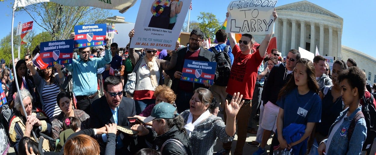 The demonstrator was quickly escorted out, but the moment illuminated the dynamics of Obergefell v. Hodges, a landmark case that should settle once and for all the legality of gay marriage—perhaps the biggest constitutional battle pitting civil and states’ rights since the Supreme Court decided Brown v. Board of Education more than 60 years ago. The court first took up the issue in 2013, when it voided the part of the federal Defense of Marriage Act defining marriage as between a man and a woman. But the arc toward equality for gays and lesbians began bending nearly 20 years ago, in Romer v. Evans, when a majority of the court ruled that the Constitution stood as a guard against the good intentions of a democratic majority willing to strip gays and lesbians of legal protections.
