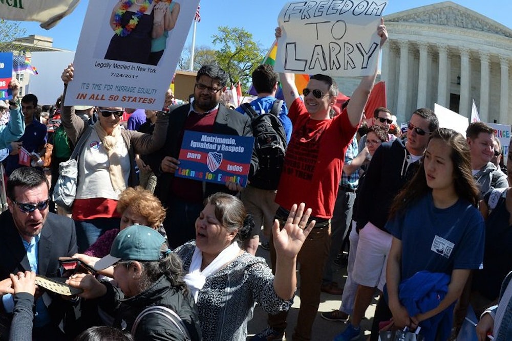 For all the discussions around equality and dignity, the court largely declined to delve much into whether laws targeting gays and lesbians are owed a higher level of constitutional scrutiny. This is a rather big omission: In all prior gay-rights rulings, the Supreme Court has refused to say whether laws directed at gays and lesbians deserve heightened scrutiny—as do laws premised on the basis of race or gender. This constitutional vacuum, in turn, explains why it’s perfectly legal in the majority of states to deny basic civil-rights protections to gays and lesbians in areas such as employment and housing. From oral arguments alone, it doesn’t seem like Obergefell will fill that void in the law.