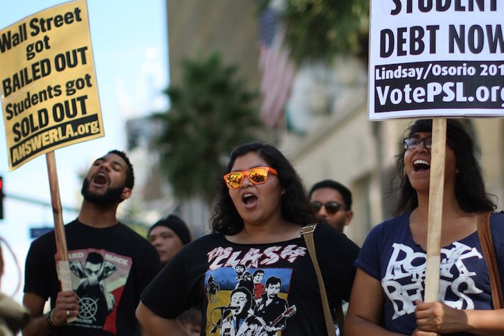 “They’re using us so they can pretend to care about students,” said Laura Hanna, an organizer with the Debt Collective, which has helped assemble a group of over 100 students from the Corinthian network of for-profit colleges who are refusing to pay back their loans.