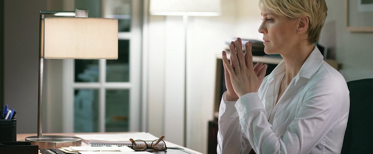 The most recent season of “House of Cards,” its third, opens with Frank Underwood (Kevin Spacey), the show’s slimy protagonist, occupying the Oval Office. His schemes worked: He weaseled his way into the vice presidency, then manipulated the sitting president into resigning in shame. Having betrayed and killed everyone who stood in his path, he was left to deal with policy debates and campaign strategies—hardly the high melodrama that propelled the first two seasons. The show had to locate a new source of tension, and it found it by brutally dissecting the marriage of two political vultures, and turning Frank’s wife Claire (Robin Wright) into the show’s stealth protagonist.
