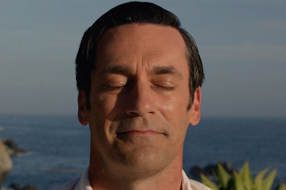 In "Mad Men," advertising—like the movies, like television, like the rest of twentieth-century mass culture—can make us feel a little less alone, for at least little while. Remember Don’s—and the show’s—most famous ad campaign: the Kodak carousel pitch that moved Harry Crane (Harry Crane!) to tears. “Happiness,” Don said, “is a billboard on the side of a road that screams with reassurance that whatever you're doing is OK. You are OK.” In May 1970, five months before Don arrived at Esalen, The New Yorker called the hippie retreat “a West Coast organization that seeks to connect people who feel disconnected from themselves and other people.” I’m OK, you’re OK. Don Draper found some connection while listening to another lonely man's sad story, and then he found a way of bottling up that feeling and beaming it in color onto the screens of millions of people. Is it the real thing? It’s something.