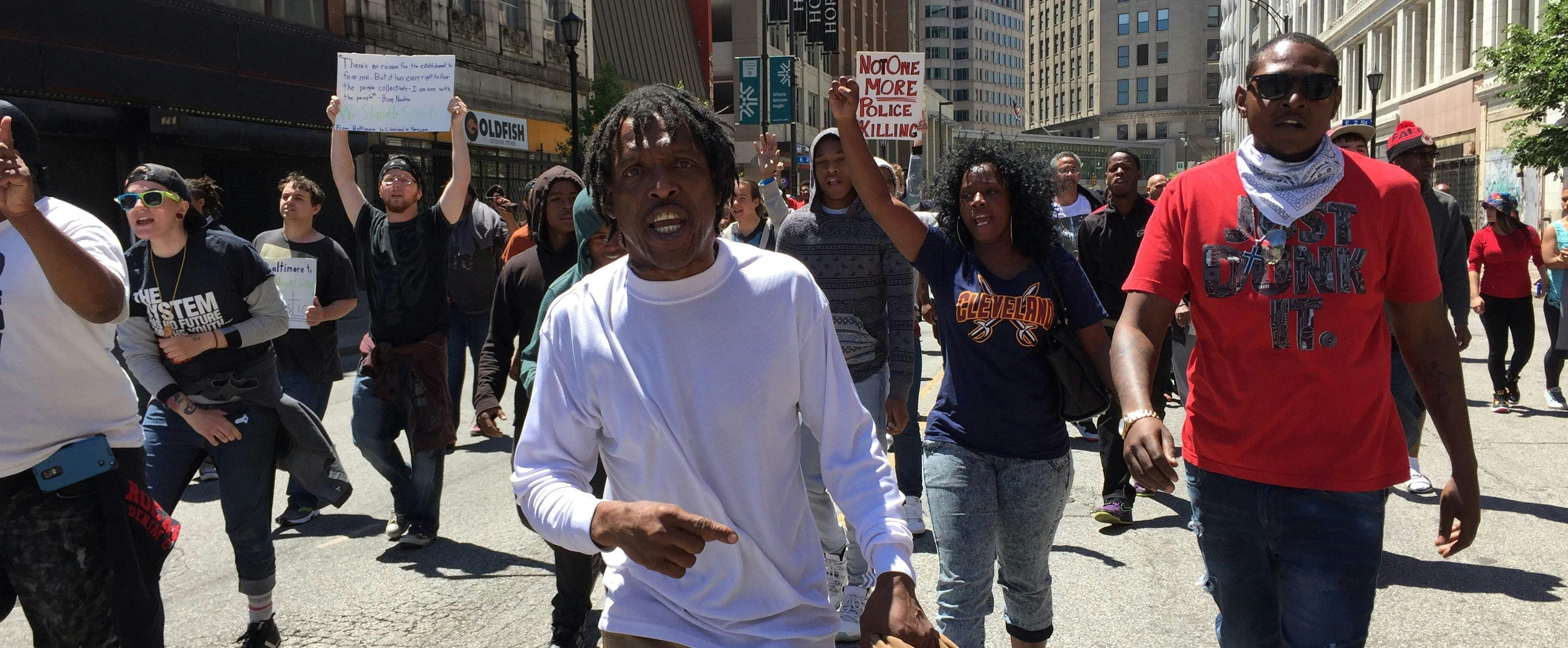 Afterward, there was an impromptu protest march. Alfredo Williams, Malissa’s brother, was part of it. He carried a sign that bore an image of her smiling over the date of her death, November 20, 2012. “This was real disrespectful,” he told me as we walked towards Public Square, the heart of downtown, together. “This man murdered her. He should’ve never got off on this. This was murder.” A disproportionate police presence kept pace with the few dozen marchers in front of us. I asked Williams about the DOJ inquiries. He urged them to look deeper into the Cleveland police department, reiterating that he doesn’t trust any city cop now. “None, whatsoever.”