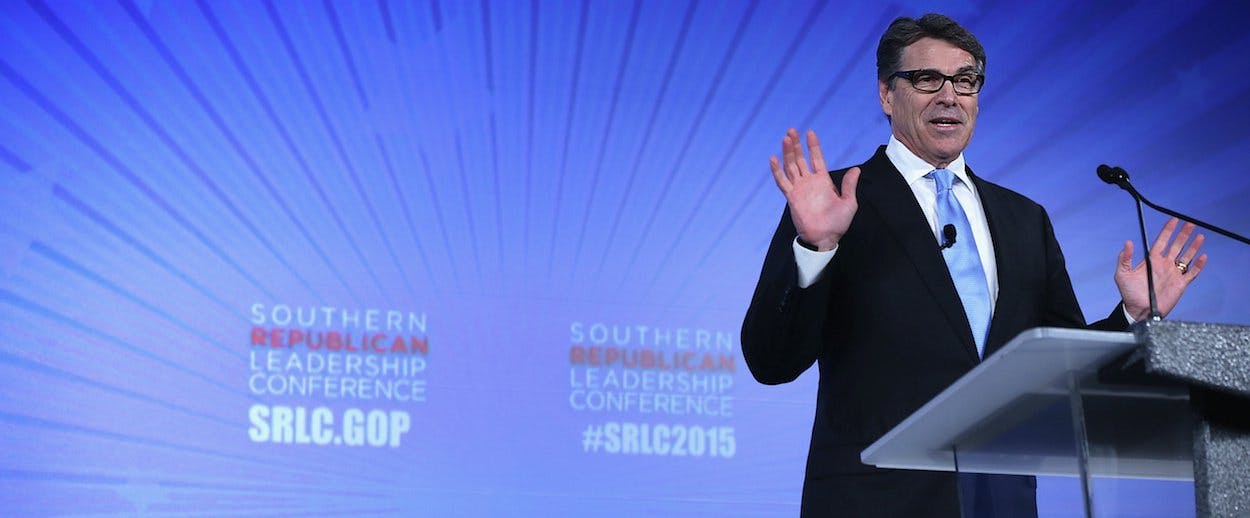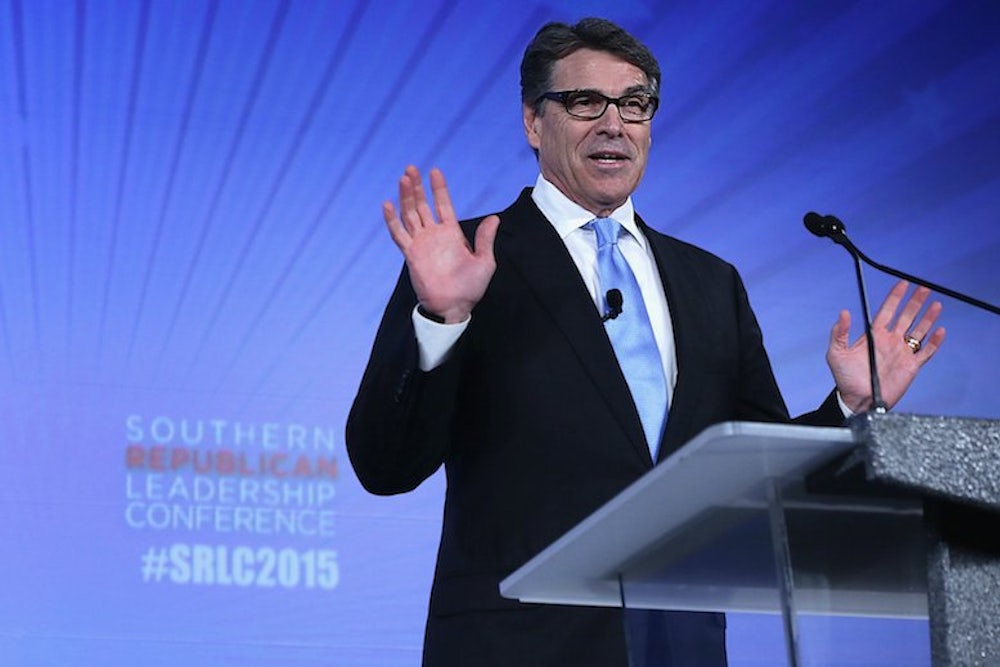 Rick Perry will become the tenth Republican to officially join the 2016 presidential race and his environmental policies (or lack thereof) should already sound familiar. Like most of the field, Perry doesn’t accept that climate change is manmade, and he likes to remind conservative voters about this when he has the opportunity. Last year, Perry said, “I don’t believe that we have the settled science by any sense of the imagination” on climate change, calling it a “disservice” to label carbon dioxide as a pollutant. “I’m not a scientist,” Perry has also reminded us.
