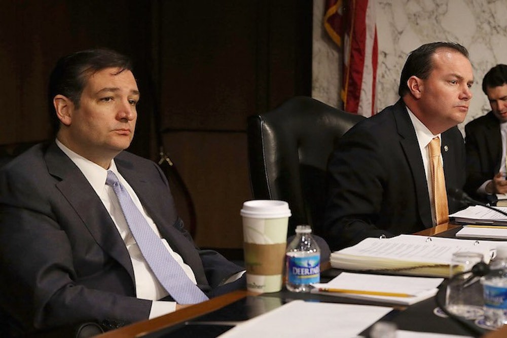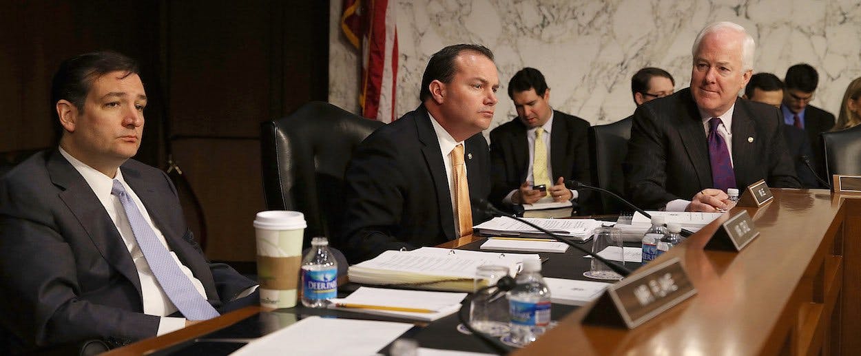 “Things can’t be turned on a dime,” Senate Majority Whip John Cornyn told Politico. “People can run for president, but we’ve actually got to solve a problem.” Cornyn may have been thinking of his fellow Texan Ted Cruz, who wants to use King as a pretext to repeal all of Obamacare. But his discomfort with Cruz' absolutism carries a whiff of inconsistency: Cornyn signed on to Republican briefs, first urging the justices to hear King and then asking them to void the subsidies. In January he eagerly anticipated that the Court would “render a body blow to Obamacare from which I don’t think it will ever recover.”