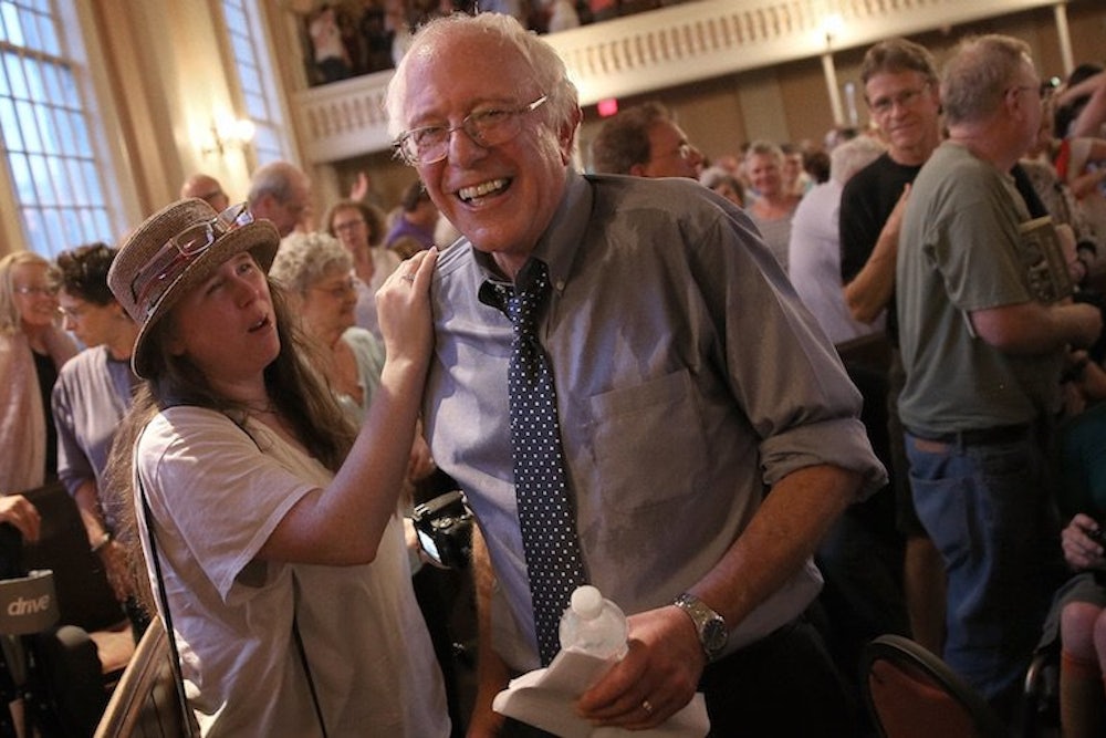 Vermont’s reputation for hacky sacks, craft beer, and environmentalism stands in contrast to tax-free New Hampshire’s business friendliness, but Sanders supporters say the Green Mountain State has a lot to teach us. Keith Williams, of Mason, has lived in New Hampshire for 21 years since moving from Bristol, Vermont. “[Residents here] are battling pipelines filled with toxic fossil fuels while Vermont is spreading increasing areas of windmills and solar panels; a bright idea. Vermont is a model approach to opioid addiction in funding and law-enforcement conduct. New Hampshire is gutting services to mental health, escalating addiction and overdose; a sick idea.”