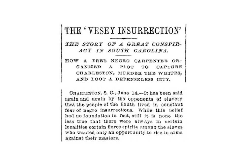 That's according to some historical accounts, but Joseph Kelley's 2013 book America’s Longest Siege: Charleston, Slavery, and the Slow March Toward Civil War, suggests that Vesey never plotted any such revolt. Instead, he may have been the victim of racist paranoia, much like the nine African-Americans whom Roof has confessed to murdering. Racism is a form of imagination, not just of domination. And across our history, whites have imagined blacks conspiring against them.