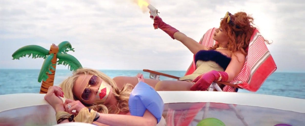 Of course, if we contend with Kornhaber’s claim that “BBHMM” is “that most American of genre—revenge fantasy,” we can’t ignore that it is a particular one, against a white America that has exploited black people for centuries. Rihanna is of color; her accountant and his wife are white. If you don’t see that, some argue, you’re missing the bigger question: Why does Rihanna face such scrutiny for objectifying women when her white contemporaries—Madonna, Lady Gaga, Katy Perry—do not?
