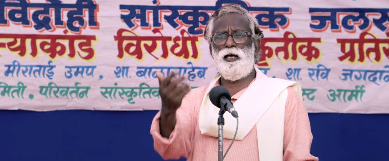 Though the singer Kamble is charged with violating several laws—some of which are residual English colonial penal codes—we get the sense he is really on trial for being a nuisance. His songs are too anti-establishment for some of his neighbors, the police, and the local government to comfortably tolerate. But Tamhane never produces a villain or a misguided idealogue as the root of this harassment. It’s something bigger than people that drives the plot against the elderly singer, but exactly what is difficult to see: Is it the government? The weight of colonial-era laws? Is it culture? Is it tradition?