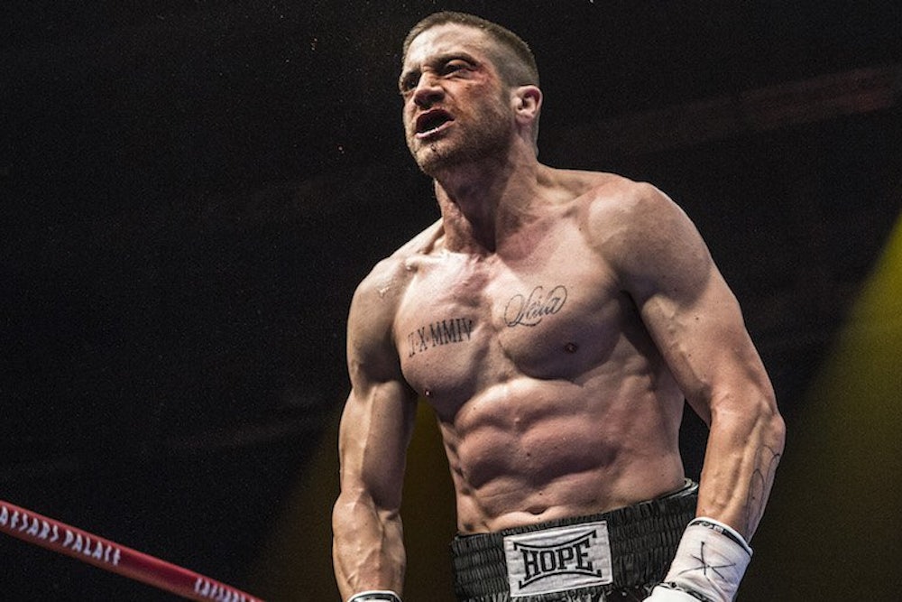 It’ll take you a few minutes to recognize Jake Gyllenhaal in Southpaw, the boxing movie opening in theaters nationwide this Friday. His face shines with sweat and is streaked with blood, his eye is so swollen that it can only open a mere sliver, and tattoos run across his chiseled chest. But even if he’s barely recognizable, Southpaw is very much the Jake Gyllenhaal show.