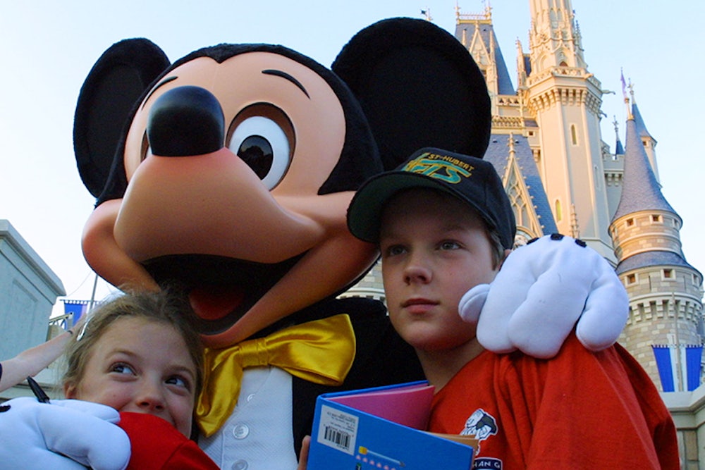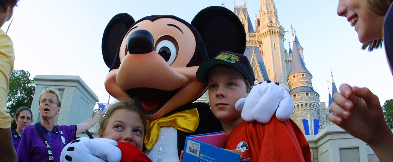 Remember, the Disney characters were all presented as puppets. They were in constant motion during the show, doing their respective things, and they were programmed very precisely so that their mouths opened and their arms wiggled for just the right musical notes (I pictured behind the scene a complicated version of an oldtime player-piano roll), so that one could have said of the show—had one been disposed to defend it as pleasure merely—that it was merely a puppet show and a rather good one. But my point is that when Mickey turned to us and bowed, it seemed absolutely plain that he had graduated from his modest "merely" roles; he was no longer a simple fantasy figure from a smart artist's pen, but the central idol of a $400 million church. Certainly as he bowed he gave us sheep a moment of genuine confusion about what we were in the presence of. As a herd we clapped, ever so briefly, then stopped, embarrassed.