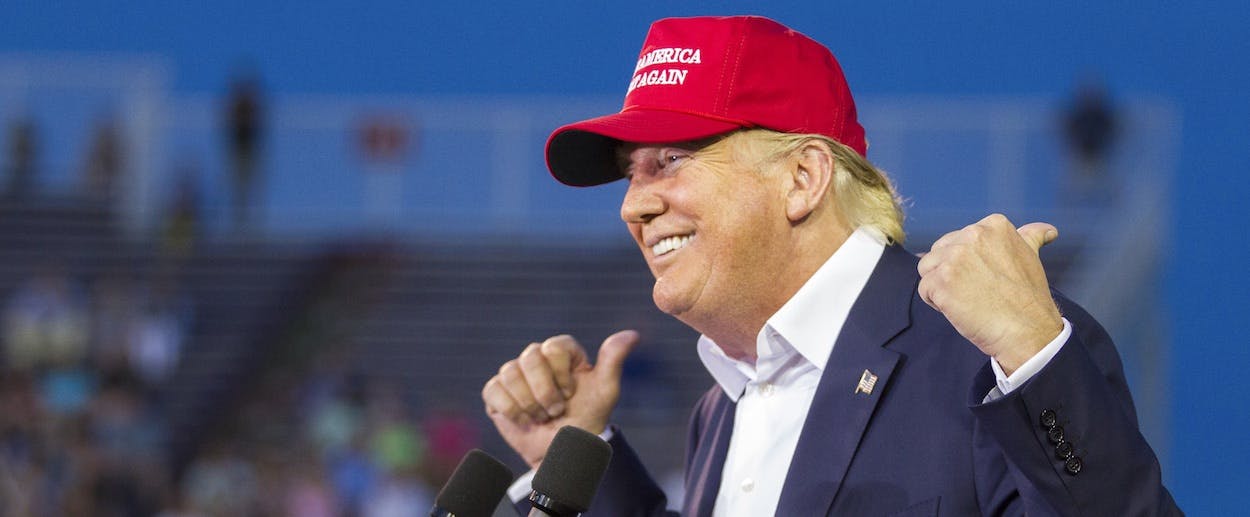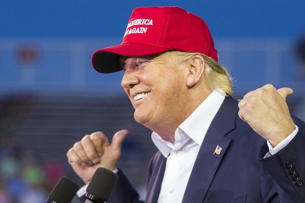 Listening to a Trump speech or watching him in a debate is an unexpectedly exhilarating experience, because amid the staid rules of politics his entire presence is refreshingly unpredictable. Letterman-style quips about Trump’s ridiculous hair only capture what is superficially amusing about the Republican frontrunner. There’s no denying that his tics and manners—his constant stream of lavish self-praise, his gesticulations and mugging to the camera, his exaggerated New York dialect (“yuge”), and, without question, his singular approach to coiffing—all make make him comical.