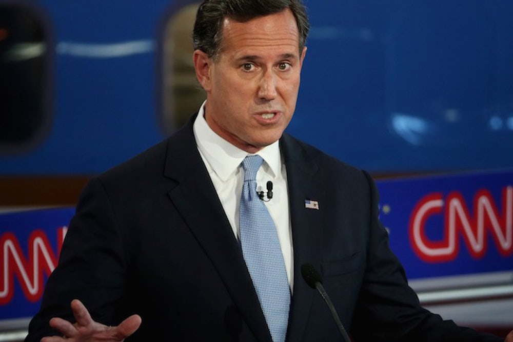 Early in the Republican presidential undercard debate tonight, Rick Santorum dredged up a powerful old Columbine myth to defend Kim Davis, Kentucky county clerk jailed for refusing to issue marriage licenses to gay couples, and to illustrate the steepness of America's moral decline. “Sixteen years ago,” he said, “this country was tremendously inspired by a young woman who faced a gunman in Columbine and was challenged about her faith and she refused to deny God. We saw her as a hero.”