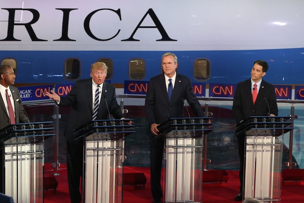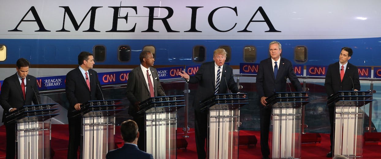 The majority of the debates were spent discussing immigration, the Iran nuclear deal, and economic policy with regard to flat versus progressive taxation schemes. But the Christian issues of yesteryear—the scourge of pornography, the presence of creationism in schools, the nature of the country as a specifically Christian nation—were ignored. Of the original issues that stirred evangelicals during Reagan’s reign, only abortion remained as a prominent issue, and it has mostly zeroed down to a debate about how to deal with Planned Parenthood in light of a specific scandal. In the place of those specifically Christian concerns is the nativist nationalism Trump introduced into the race early on, which his fellow candidates must now echo to compete with him for the support of their base. Nativism is almost never friendly to Christianity as anything more than a kind of white-identity interest, and even then, the international nature of the religion and its roots in the Middle East tend to put the most ardent white nationalists off. While no GOP candidates currently exhibit that level of nativist sentiment, there certainly appears to be a choice of focuses: either hardcore nativism, or Christianity itself. In this debate at least, it’s clear which decision the candidates made.