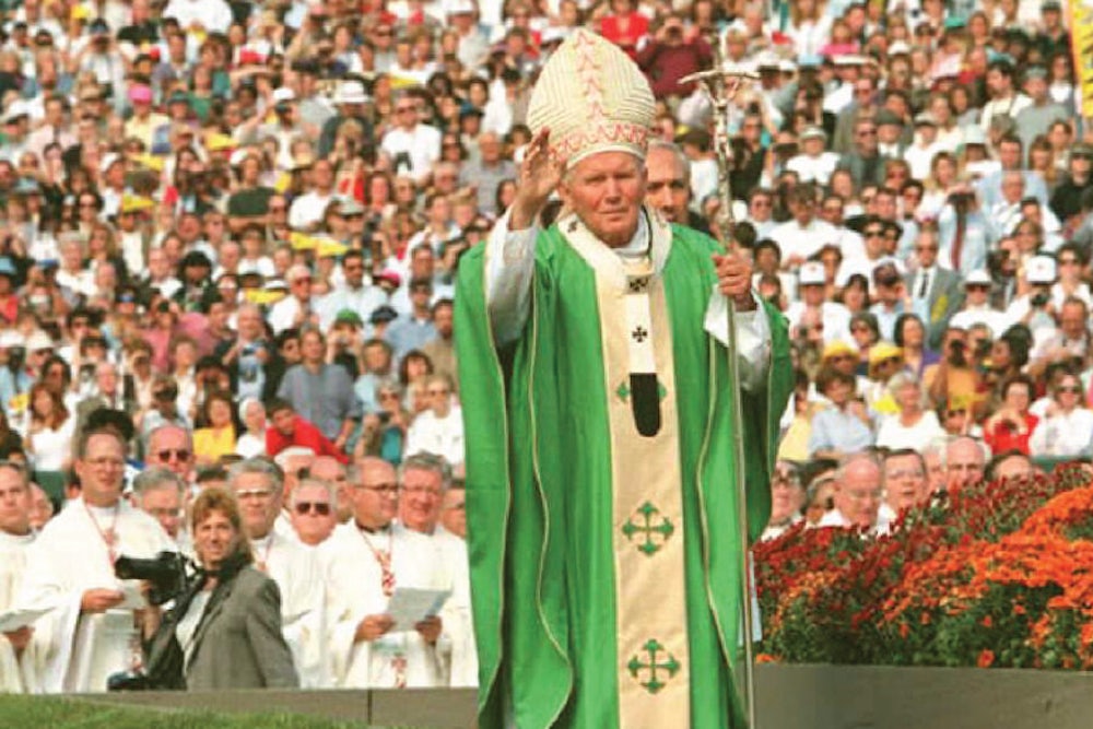 I made my way up to my seat high above first base, my water bottle in hand, and waited. The pope hadn't even left Newark, but the stadium was almost full. I felt sorry for anyone wanting to use the hours before Mass to read (I had a handy pocket copy of Lives of the Saints), to pray or to catch up on some sleep. The pre-game show made rest or tranquillity impossible. It was the sort of spectacle that I had previously associated only with big-time college football. Circles of dancers in different national costumes waved and undulated on the field. The jumbotron monitor on the scoreboard flashed the nonsensical words of a soft-pop religious song: "Shine oh people, Shine our God together." (Give me Michael Bolton. Almost.) And the inanity of the lyrics wasn't nearly as bad as the inanity of the chipper chatter by the on-the-field narrators. One of them asked for a "papal wave," and the spirit instantly and serially moved the arms of this American congregation. A pert usher climbed vigorously up the stadium steps asking if everyone had a pennant to wave. (At what? The Host?) As an army of priests and bishops entered the field, children swayed in time to a synthesizer medley that began with "Amazing Grace," and a second broadcaster noted that "200 of your bishops and 300 of your priests are here today." It was probably a good idea to emphasize the pronoun; I, at least, wished I didn't have to claim this circus as my own. And the TV-style tension started building. "In just moments, our pilgrim of peace will be here ... in Camden Yards," declared one of the ready-for-ESPN baritones. This was the cue for the finale. The dancers retook the field, accompanied by a flip-card brigade and a parade of men and women carrying different national flags. A gospel choir sang, "I want to be ready when Jesus comes." OK, but who could find Him in this pandemonium?
