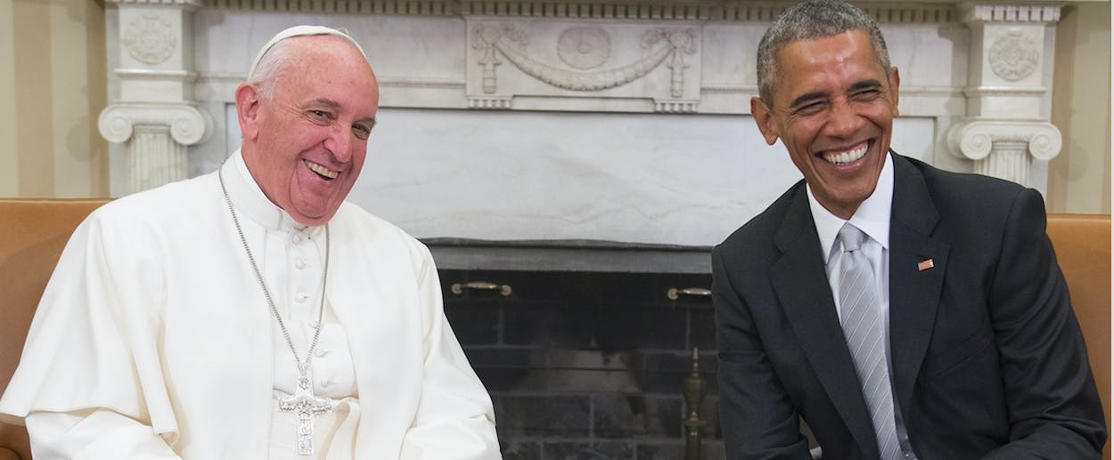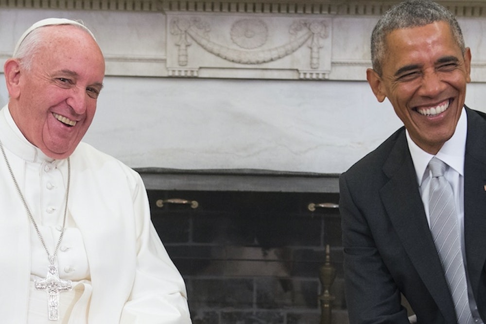 That's Pat Buchanan’s tactic. As Jeet Heer wrote on Tuesday, “the legendary conservative columnist, takes the right-wing hostility toward Francis to its logical conclusion and sees the current Pope, along with President Obama, as being emblematic of the deep sickness in Western civilization.” In Buchanan’s eyes, both Obama and Francis are presiding over fallen institutions, having abandoned eternal values in favor of cultural relativism and liberal democracy: “Every civilization seems to recognize the necessity of faith except for the West, which has lost its faith and is shrinking and dying for lack of it,” Buchanan writes. In many ways, Buchanan is an army of one, but as far as Big Picture criticism of the papal visit goes, it doesn’t get much bigger. The decline of faith in the West under Obama and Francis will be a theme for some during the papal visit (though I doubt anyone will take it up as stridently as Buchanan).