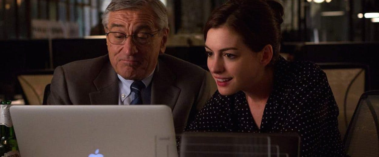 The Intern, out this week, stars Robert De Niro as Ben, a wise septuagenarian widower who is so bored of retirement that he applies to be an intern at an e-clothing company owned and run by Jules, a young go-getter played by Ann Hathaway. At first glance, the film seems to confront the problem of unemployment head on, as it begins with Ben’s search for employment, complete with a newfangled web-video cover letter. More, his function in the film is to reassure Jules about the value, and necessity of work. Though she's built her company from the ground up in a year and a half, she's worried that she's overcommitted. She's thinking about bringing in a CEO to manage the business for her and give her more time to spend with her stay-at-home husband and daughter.