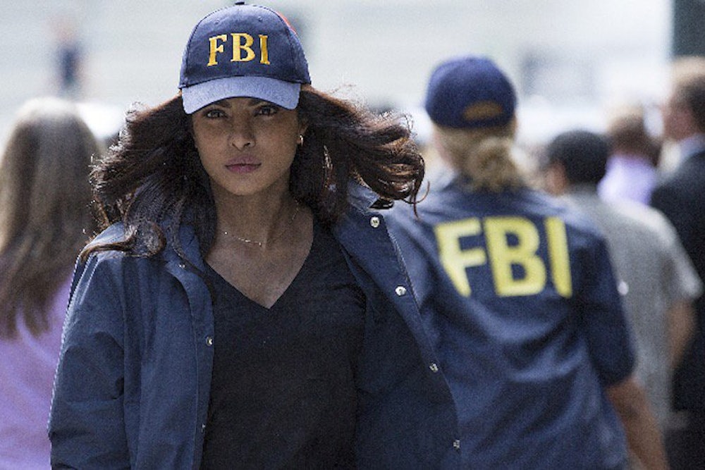 ABC’s new FBI drama, Quantico, starts with a bang in the debris of midtown Manhattan, where a terrorist attack has just obliterated Grand Central Station. Amidst sirens and falling ash, the camera hones in on a brown arm and hand, manicured, dusty, waiting to be identified and possibly rescued. On the woman’s stiff wrist, we can make out a bracelet bearing an “om” pendant. The hand belongs to Priyanka Chopra, Quantico’s lead and the first Indian actor to star in a primetime drama on American TV.