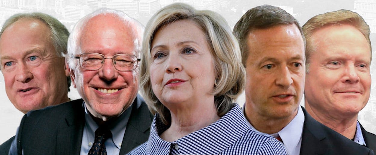 Move over, Donald Trump. It's time for the adults to take the stage. The first Democratic primary debate, hosted by CNN and Facebook at the Wynn Las Vegas hotel, begins at 8:30 P.M. Eastern time on Tuesday, October 13. Five Democratic hopefuls will participate: Hillary Clinton, Senator Bernie Sanders, Martin O'Malley, Jim Webb, and Lincoln Chafee. Vice President Joe Biden has not officially declared his candidacy, but a podium will be added for him if he decides to join. Anderson Cooper is moderating, and Dana Bash, Juan Carlos Lopez, and Don Lemon will also be asking questions.