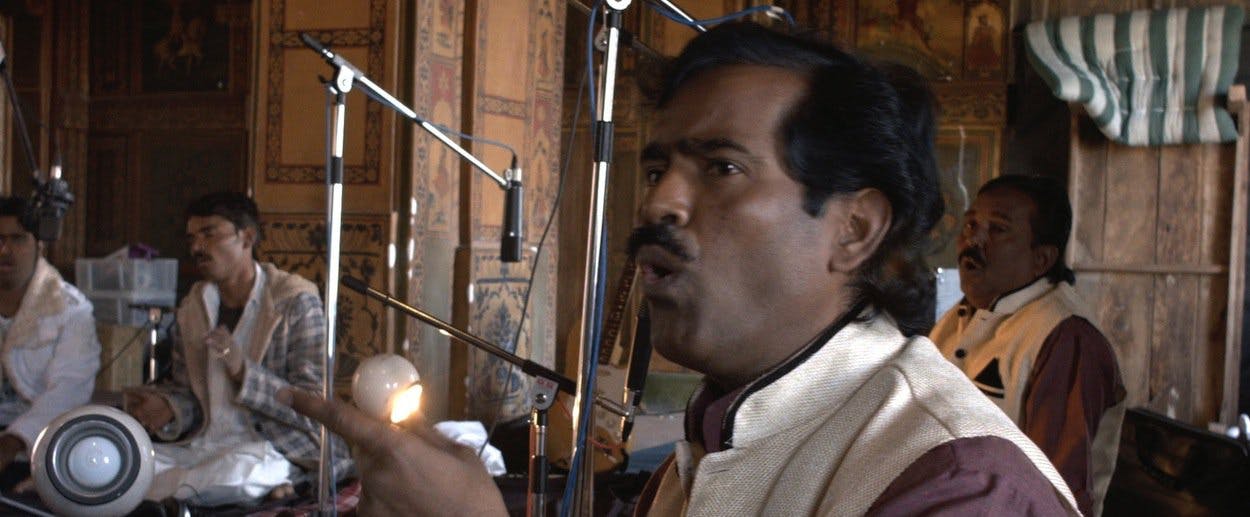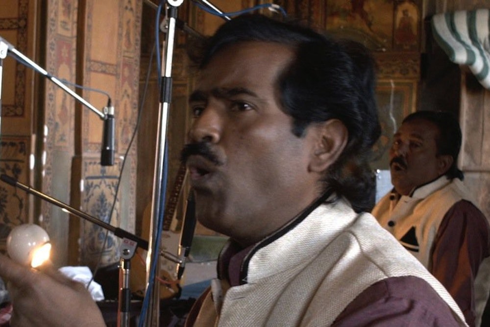 All of those are films about performance, though: Junun is a film about recording, a much rarer subject for a major director to take on, in part because it’s less inherently dramatic. In a live setting, musicians act like actors, playing to an audience and turning themselves into characters: all an intelligent filmmaker has to do, much of the time, is put the camera in the right place and let the performance work its magic. But in a recording session, most musicians tend to be very focused, concentrating all of their attention on their playing and none on the people who might happen to observe it. Junun shows this concentration, in a way that is often compelling but never dramatic, per se. Its closest cousin may be One Plus One, Jean-Luc Godard’s infamous portrait of the Rolling Stones’ 1968 rehearsal and recording sessions for the song “Sympathy for the Devil.” But where Godard teases Stones fans by giving them fragments of the same track over and over, Anderson lets complete performances play out (and then some), emphasizing the intense commitment of the musicians to their work.
