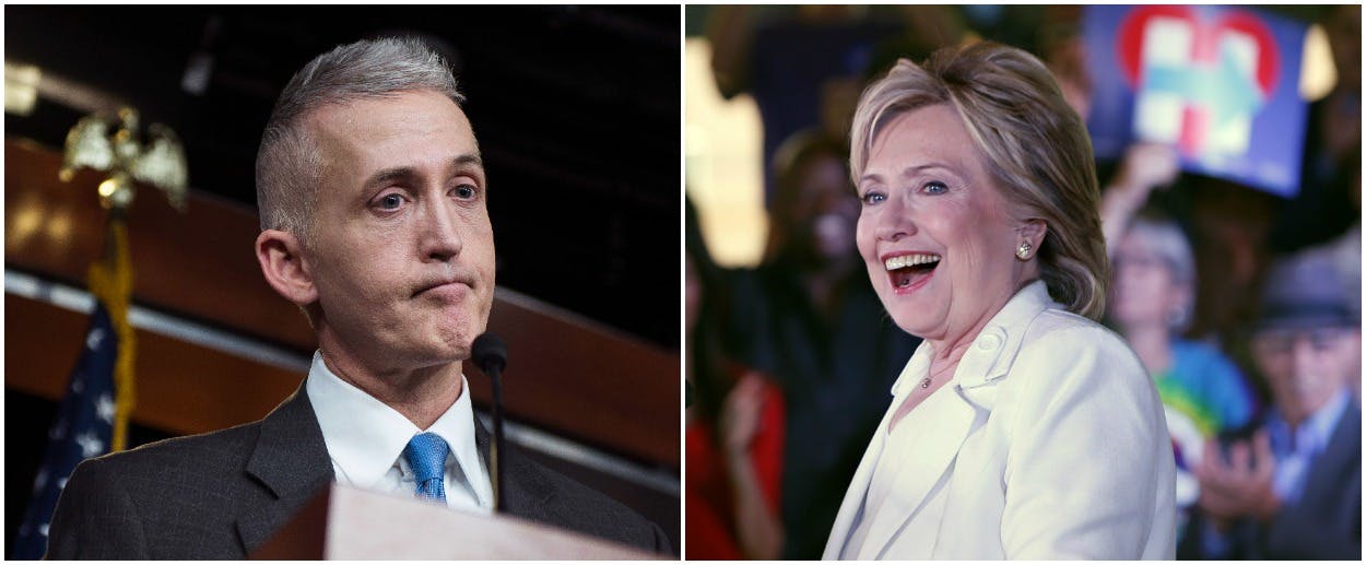The comparison became inescapable this weekend, when the top Democrat on the Benghazi committee revealed that its Republican chairman, Trey Gowdy, had fabricated a redaction to Clinton’s emails to make it look like she’d endangered a spy, and the CIA had busted her. Gowdy even mimicked intelligence community vernacular, designating the redaction as undertaken to protect “sources and methods,” without disclosing that he was the redactor or that the CIA had cleared the name he redacted for release.