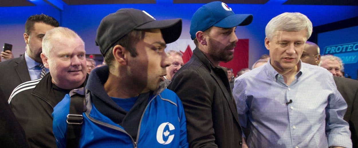 And yet, on Saturday night, in a desperate last-minute attempt to save his flailing campaign to be re-elected as prime minister of Canada, Harper made his case at an event hosted by former Toronto Mayor Rob Ford and his brother Doug at the Toronto Congress Centre, on 650 Dixon Road, in the semi-industrial suburb of Rexdale. Rob Ford was on his home turf: Rexdale is the seat of his political support, and where he still serves as city councillor; the Congress Centre is where he launched his 2010 campaign for mayor and held his victory party, and where he launched his 2014 campaign, which was derailed by a cancer scare and unsuccessfully taken over by his brother Doug.