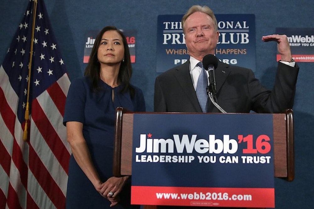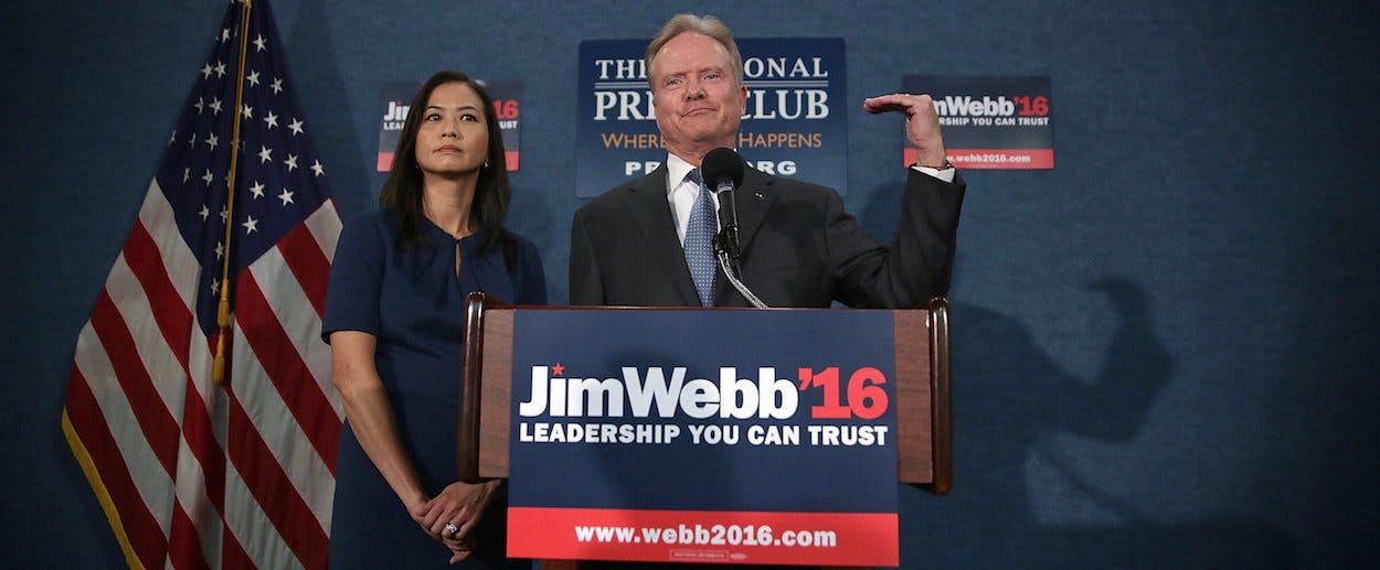 Jim Webb can now add “Democratic presidential candidate” to his list of formerly held titles. On Tuesday, the former Virginia senator (and former Republican) announced at the National Press Club that he is withdrawing from the primary, while warning that he's “not going away" in the presidential race. Instead, he will explore his options to run as an independent in coming weeks, as he talks "with people I have not felt comfortable talking with as a Democratic candidate.”