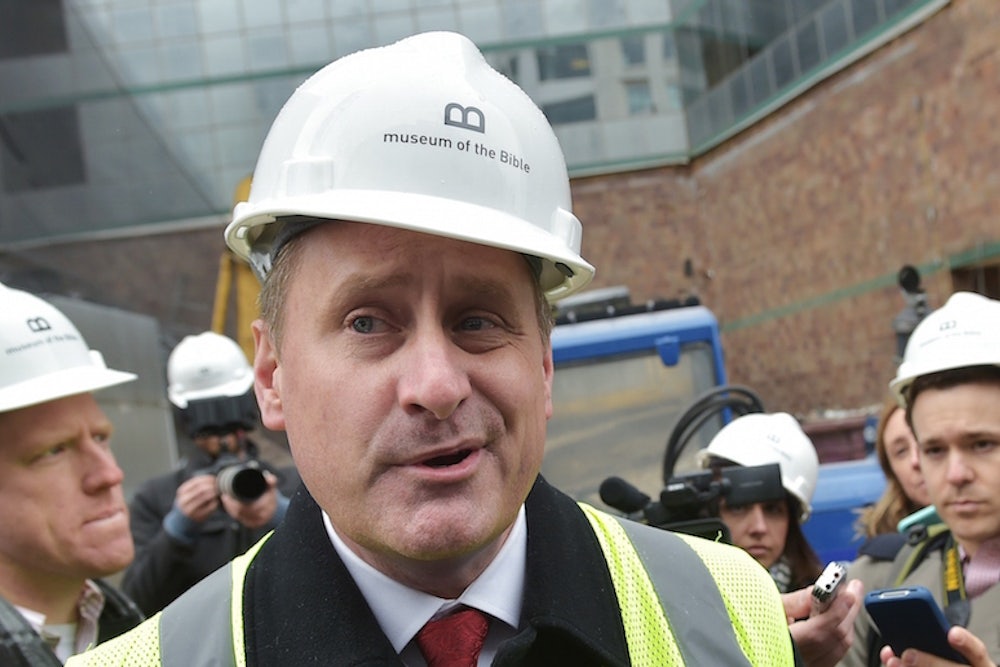This week Candida Moss and Joel Baden—professors at Notre Dame and Yale Divinity School, respectively—reported that federal investigators are looking into a shipment of more than 200 ancient clay tablets procured by the Greens from Iraq via Israel. The feds intercepted the tablets in Memphis in 2011, en route to Hobby Lobby’s Oklahoma headquarters. Thousands of years old, the tablets are inscribed with cuneiform, an ancient script consisting of wedge-shaped characters thought to be among the earliest forms of writing. The tablets were evidently destined for the Greens’ forthcoming Museum of the Bible, projected to open in Washington, D.C., in 2017.