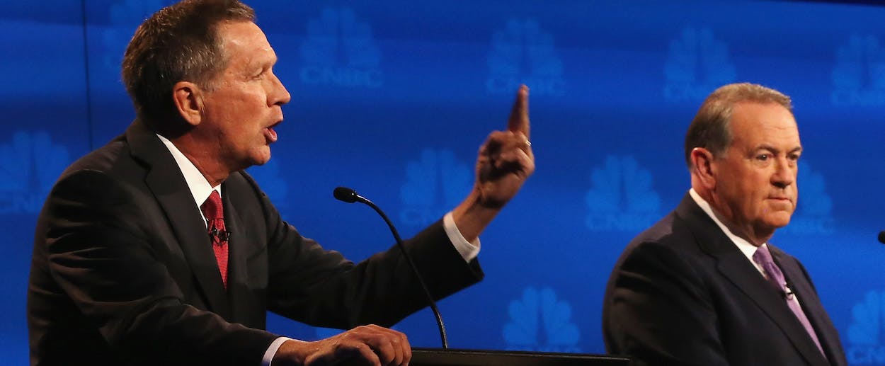 A very animated Kasich said of balancing the budget, “You can’t do it with empty promises.” His opponents were “coming up with these fantasy tax plans,” he said. Who was offering those empty promises, the moderators asked? (The moderators were trying very hard, and succeeding, at getting the candidates to be mean to each other.) Kasich looked sincerely upset: "This stuff is fantasy. We’re not getting rid of Medicare and Medicaid! Come on!”