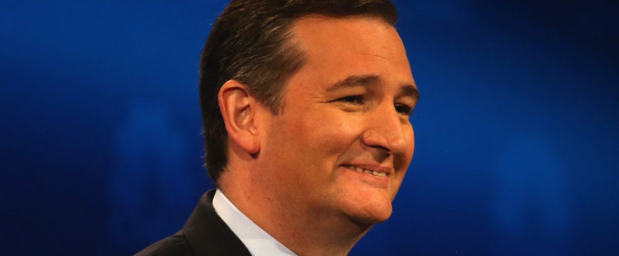 At the CNBC Republican debate, Ted Cruz really took it to his opponents—the terrible liberal media. “The questions that have been asked so far in this debate illustrate why the American people don't trust the media,” Cruz said in response to a perfectly reasonable response to a question about his opposition to a debt limit deal. The moderators, he said, had tried to create a “cage match” between the candidates, while Democratic candidates were asked questions like, “Which of you is more handsome and why?”