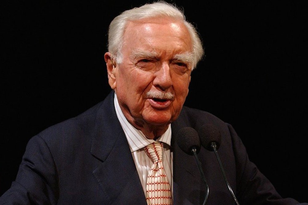 The image of Walter Cronkite blinking back tears is one of several Cronkite images that mark the highlights of the recent past. At the Democratic National Convention in 1968, we (and Cronkite) watched Dan Rather on the convention floor, struggling with "security guards" ("If you're not going to arrest me, take your hands off me!"), who finally knocked him down. Cronkite lost his temper: "I think we've got a bunch of thugs here, Dan—if I may be permitted to say so." Cronkite also has exploded in more jovial ways. Covering a space shot in the early 1960s, he roared at the moment of lift-off, over the revving of engines and the nattering of technicians, "GO, BABY, GO!"
