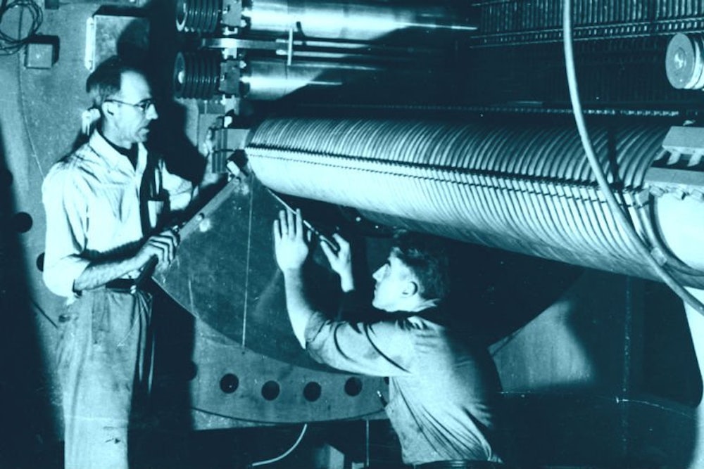 Moreover, Strand’s account of what went wrong with U.S. science in the latter half of the twentieth century is oddly framed. The culture of “Big Science”—a term first used by the physicist Alvin Weinberg in 1961, toward the end of the period chronicled in The Brothers Vonnegut—certainly has its dystopian aspects, not least in its connections to what President Eisenhower called “the military-industrial complex.” But Strand chooses to focus instead on how, in these years, being a scientist became less fun. The early House of Magic is portrayed as a delightful playground, which “encouraged its scientists’ fixations the way parents encourage a child’s passion for dinosaurs or ants.” But this spirit of childlike wonder is soon suffocated by the sinister agendas of business and government, not to mention the balkanization of science itself. Several times Strand refers to disciplinary specialization (which, we should note, was already well underway by the turn of the twentieth century) as a lamentable development. In the mid-’40s, she says, “the scientific disciplines were just beginning to divide into a series of silos, their boundaries patrolled by ever more focused specialists.” Bernard, in particular, is presented as one of the last of a dying breed of intrepid, generalist “Victorian scientists”: “Bernie was a tinkerer. For him, tinkering was what science was about. You played around with something until you understood it.” This innocent curiosity, Strand claims, was welcomed at the early G.E. Research Lab, before “the white-collar world of the scientists, allied with the government and the military, [began] edging away from the blue-collar world of the Works and into its rarefied technocratic sphere.”