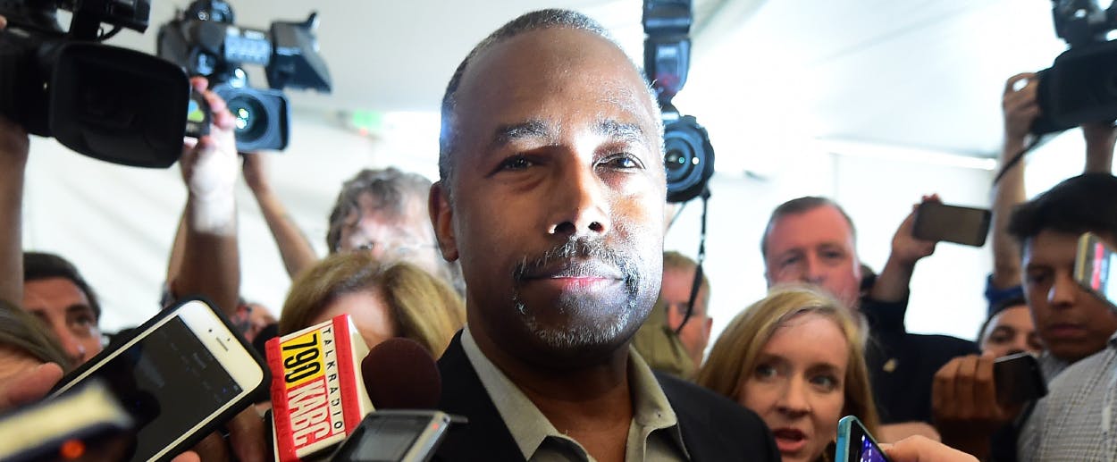 That Carson is black and popular among Republican primary voters is incontrovertible. It’s also largely beside the point. The question of why Carson is popular on the right is complicated, and surely in part related to his aforementioned conservative politics, his religious devotion, and his hypnotically avuncular demeanor. But it is just as surely related to the fact that Carson absolves conservatives of their coarse and patronizing view of black voters and political leaders. Carson attributes his unpopularity with liberals to the notion that he had the temerity to “come off the plantation.”