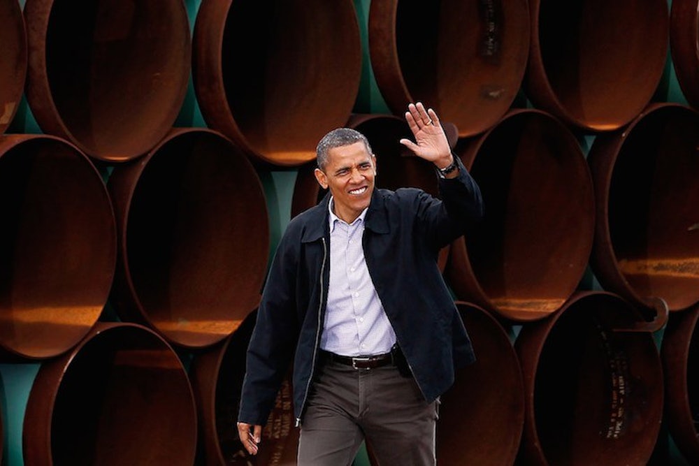 In the last year he began to talk about Keystone differently. In public, he began taking a harsher tone as he ramped up his efforts on climate change. “Understand what this project is: It is providing the ability of Canada to pump their oil, send it through our land, down to the Gulf, where it will be sold everywhere else. It doesn't have an impact on U.S. gas prices,” he said in November 2014. In the spring, Obama told South Carolina students that the tar sands represent an “extraordinarily dirty way of extracting oil.” He hinted, “We're not going to authorize a pipeline that benefits largely a foreign company if it can't be shown that it is safe and if it can't be shown that overall it would not contribute to climate change.”