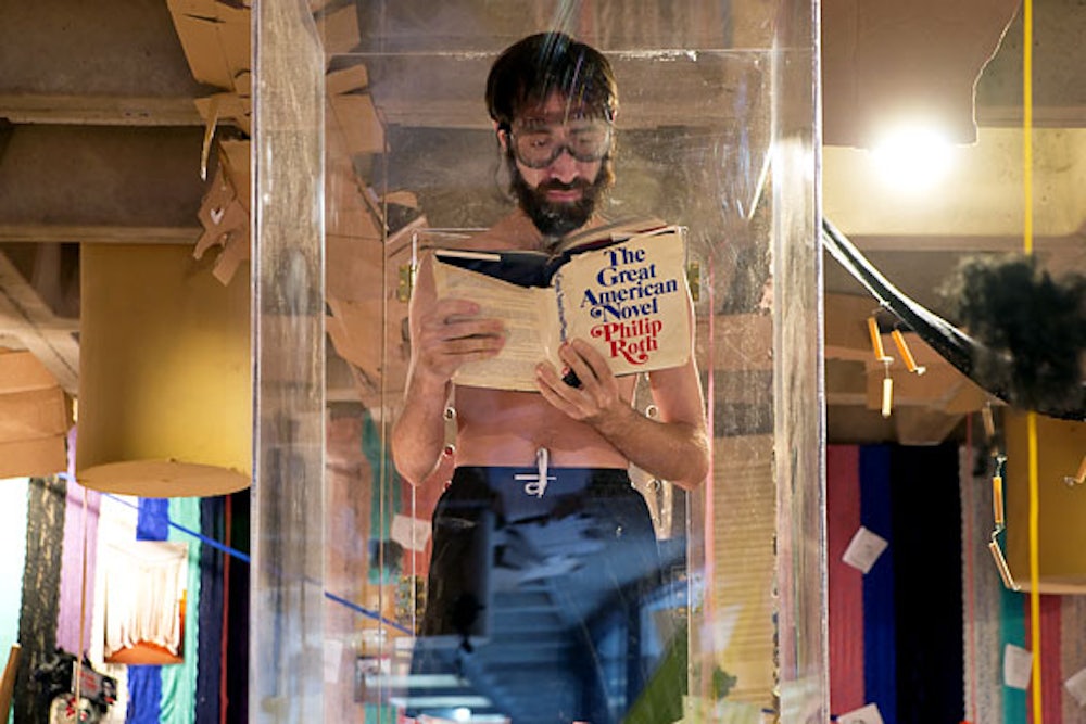 Three years ago, the famed novelist’s legal team sent Zanisnik a cease and desist letter to stop his performance of Every Inch a Man, a show in which the artist silently read Roth’s The Great American Novel in a glass case while a fan blew “old baseball cards and money in the air around him.”