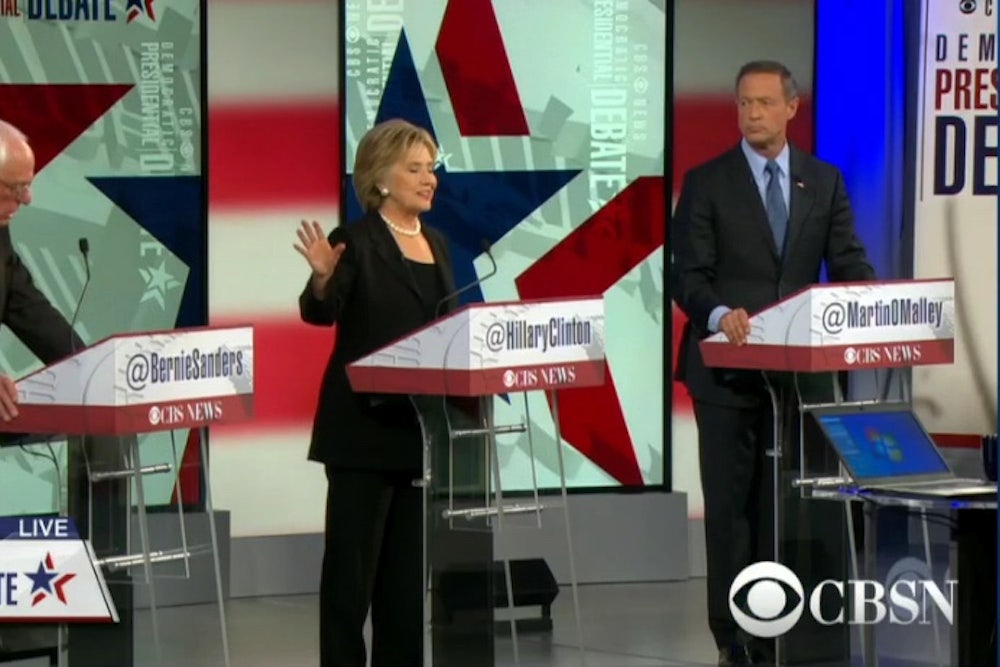 Contrast that with the CNBC debate with the GOP candidates. Several Republicans memorably used the moderators as a punching bag in what was otherwise a fairly substantive debate. Asked about taking the debt ceiling hostage, Ted Cruz shot back at the moderator, “The questions that have been asked so far in this debate illustrate why the American people don’t trust the media. This is not a cage match.” And the tactic worked. He got resounding applause from the audience, and used up his time complaining about the media so that he never actually answered the question. Donald Trump, for his part, also complained about the media.