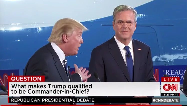 Jeb has long been considered the best speaker of the Bush family. During the 2004 presidential campaign, the New Yorker noted, “Jeb has always been the brainiest, most articulate male member of his family—he suffers from none of the dyslogia that afflicts his father and his brother.” It’s like that thing where there’s a stick that’s not that high off the ground, and you jump over it, and it’s not that hard.